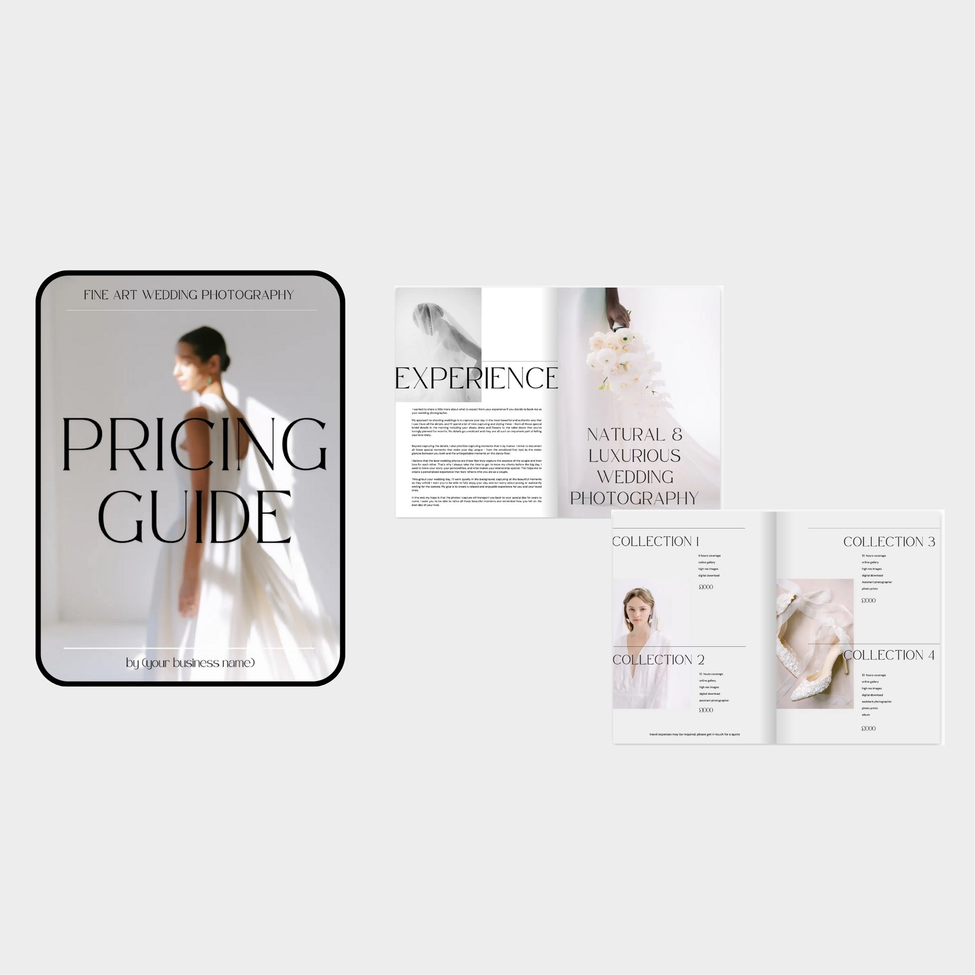 The guide is a marketing tool that I use in my own wedding photography business to share my pricing collections with potential couples. It is the perfect way to elevate your brand and offer this guide either as a pdf or printed magazine to your wedding couples.